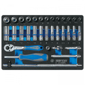 Комплектация- Головка торцевая стандартная 6-гранная 2335M 4, 4.5, 5, 5.5, 6, 7, 8, 9, 10, 11, 12, 13, 14 мм- Головка торцевая глубокая 6-гранная 2235M 4, 4.5, 5, 5.5, 6, 7, 8, 9, 10, 11, 12, 13, 14 мм- Трещотка флажковая 2771-55G 24 зубца, 140 мм- Вороток скользящий 2571-45 115 мм- Отвертка вороток 2178DF 150 мм- Удлинитель 2221-02 50 мм- Удлинитель 2221-04 100 мм- Удлинитель 2221-06 150 мм- Кардан 2792 36 мм- Держатель вставок (бит) 1/4" 2142 25 мм- Пластиковый (PP) футляр 820001 289 x 230 x 66 мм- Ложемент EVA - 280 x 187 мм