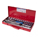 Комплектация- Головки короткие 6-гранные 4335M 10, 11, 12, 13, 14, 15, 16, 17, 18, 19, 20, 21, 22, 23, 24, 27, 30, 32 мм- Трещотка флажковая 4768-10F 32 зубца, 250 мм- Вороток с шарниром 4452-18FR 450 мм- Вороток скользящий T-типа 4572-12 300 мм- Кардан 4791R 77,5 мм- Удлинители 4251R 75, 125, 250 мм- Металлический кейс - 445 x 187 x 50 мм- Ложемент PVC - 440 х 180 мм