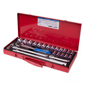 Комплектация- Головки короткие 6-гранные 4335M 10, 11, 12, 13, 14, 15, 16, 17, 18, 19, 20, 21, 22, 23, 24, 27, 30, 32 мм- Трещотка флажковая 4779-10GR 32 зубца, 250 мм- Вороток с шарниром 4452-15FR 380 мм- Кардан 4791R 77,5 мм- Удлинители 4251R 125, 250 мм- Металлический кейс - 445 x 187 x 50 мм- Ложемент PVC - 440 х 180 мм