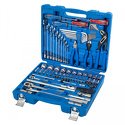 Набор: 87 шт • Ключи: комбинированные, шестигранные, Torx, инбусовые • Головки: 6-ти гранные головки, свечные • Ключей-трещоток: 2 шт • Хранение: пластиковый кейс
