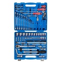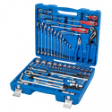 Набор: 97 шт • Ключи: комбинированные • Головки: 6-ти гранные головки, свечные • Ключей-трещоток: 2 шт • Хранение: пластиковый кейс