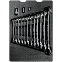 КомплектацияКлюч трещоточный комбинированный: 8, 9, 10, 11, 12, 13, 14, 15, 16, 17, 19, 22 ммПереходник для трещоточных ключей: 1 штПереходник для трещоточных ключей 13 мм для головок 3/8": 1 штПереходник для трещоточных ключей 19 мм для головок 1/2": 1 шт