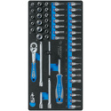 Комплектация- Ложемент.- Головки и принадлежности 1/4":* Головка торцевая стандартная шестигранная серии 2335M 4, 4.5, 5, 5.5, 6, 7, 8, 9, 10, 11, 12, 13, 14 мм.* Головка торцевая TORX Е-стандарт серии 2375M E4, E5, E6, E7, E8.* Отвертка вороток, двухкомпонентная ручка серии 2178DF 150 мм.* Вороток скользящий серии 2571-45 115 мм Удлинитель серии 2221 50 мм.* Удлинитель, 15 градусов, с шаровым окончанием, серии 2293 100 мм, 150 мм.* Кардан серии 2792 1 шт.* Трещотка флажковая с кнопкой серии 2771-55G 24 зубца, 140 мм.- Головки с запрессованными вставками 1/4", длина 37 мм:* Крестовые Philips, серии 2031 PH1, PH2, PH3, PH4.* Шлицевые Slotted, серии 2032 4, 5.5, 6.5, 8, 10 мм.* Торкс TORX, серии 2033 T8, T9, T10, T15, T20, T25, T27, T30, T40.* Шестигранники HEX, 5 мм, серии 2035 H3, H4, H5, H6, H7, H8, H10.- Упаковка.