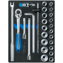 Комплектация- Головки торцевые стандартные 6-гранные 4335M 8, 9, 10, 11, 12, 13, 14, 15, 16, 17, 18, 19, 21, 22, 23, 24, 27, 29, 30, 32 мм- Трещотка флажковая 4771-10GR 250 мм, 32 зубца- Удлинители 4251R 125, 250 мм- Вороток с шарниром 4452-15FR 380 мм- Вороток скользящий 4572-12 300 мм- Вороток L-типа 4581-10 250 мм- Кардан 4791R 77,5 мм- Ложемент