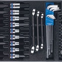 Комплектация- Насадки (биты) торцевые 1/2", TORX, L=80 мм KING TONY (4033)Размеры: T20, T25, T27, T30, T40, T45, T50, T55, T60- Насадки (биты) торцевые 1/2", HEX, L=80 мм KING TONY (4035)Размеры: 4, 5, 6, 7, 8, 10, 12, 14, 17- Шестигранники Г-образные, с шаровым окончанием KING TONY (1120M)Размеры: 1.5, 2, 2.5, 3, 4, 5, 6, 8, 10- Ключи разрезные KING TONY (1930)Размеры: 10x11, 12x14, 14x17- Съемник масляных фильтров, 60-140 мм, цепной KING TONY 3204