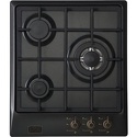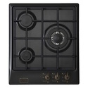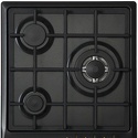 Поверхность: варочная панель • Тип поверхности: газовая • Рабочая поверхность: эмаль • Число конфорок: 3 • Установка: независимая • Газовые конфорки: всего - 3 (1 конфорка "Тройная корона") • Газ-контроль конфорок: есть • Тип управления: механическое • Переключатели: поворотные • Электроподжиг: есть, автоматический • Размеры: 450x520x57 мм • Размер ниши для встраивания: 420x490 мм • Цвет: панель - черный