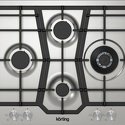 Даже если пламя погаснет, вам не стоит переживать, ведь во всех моделях Korting установлена система безопасности «Газ-контроль». Данная функция просто остановит подачу газа в случае, если конфорка случайно погаснет.Вам больше не придется пользоваться спичками и зажигалками. Система «Электроподжиг» от Korting очень удобна и абсолютно безопасна. Просто поверните и нажмите регулятор — конфорка автоматически зажжется.Korting изготавливает держатели для посуды из высококачественного материала, чтобы вы могли пользоваться ими долгие годы.Приготовление блюд становится еще более быстрым, а нагрев посуды равномерным. Korting установил в свои модели конфорку с тремя рядами пламени для более быстрого приготовления. Экономьте свое время с Korting. К тому же сверхмощная конфорка WOK поможет вам приготовить изысканные блюда восточной кухни.Мощная горелка WOK перемещена по сравнению со стандартным размещением и расположена в правой части поверхности. Такое расположение более удобное для приготовление обьемных блюд.Поворотные регуляторы новой линейки газовых варочных поверхностей Korting Crystal выполнены из металла.Поворотные регуляторы сдвинуты вправо, дальше от мощной конфорки WOK. Это исключает случайное соприкосновение с горячими поверхностями в процессе приготовления и регуляторы подвергаются меньшеиу тепловому воздействию