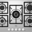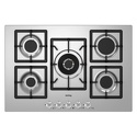 Поверхность: варочная панель • Тип поверхности: газовая • Рабочая поверхность: нерж.сталь • Число конфорок: 5 • Установка: независимая • Газовые конфорки: всего - 5 (1 конфорка "Тройная корона") • Газ-контроль конфорок: есть • Тип управления: механическое • Переключатели: поворотные • Электроподжиг: есть, автоматический • Размеры: 750x510x54 мм • Размер ниши для встраивания: 560x480 мм • Цвет: панель - нерж.сталь