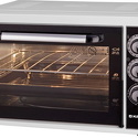 Тип: электрическая • Установка: независимая • Объем: 38 л • Цвет: белый • Дверца: откидная • Максимальная температура: 320 °С • Подсветка: есть • Количество режимов работы духовки: 3 • Переключатели: поворотные • Таймер: есть, до 90 мин • Потребляемая мощность: 1500 Вт • Комплектация: 2 противня, 1 решетка