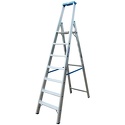 Дополнительная информациязаменяемая полка для инструментов с крюком для ведра; опорная часть с прочными поперечными распорками; защитные верхние заглушки на опорной части лестницы исключают защемление при раздвижении стремянки