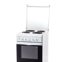 Тип конфорок: электрические • Рабочая поверхность: эмаль • Тип духовки: электрическая • Размеры (ШxВxГ): 500x850x600 мм • Цвет: белый • Конфигурация электрических конфорок: 2 x 145 мм - 1000 g 2 x 180 мм - 1500 g • Электрические конфорки: всего - 4 • Объем духовки: 54.7 л • Максимальная температура духовки: 280 °С • Подсветка: есть • Количество стекол дверцы духовки: 2 • Тип управления: механическое