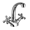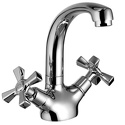 Тип - Двухзахватный, Форма излива - Традиционная, Поворотный излив - Да, Максимальный расход воды - 22.3, Покрытие - Хром, Присоединительный размер - 1\2", Высота излива - 165, Высота - 19.3, Материал корпуса - Латунь, Термостат - Нет, Количество монтажных отверстий - 1, Донный клапан - Нет, Встраиваемый - Нет, Назначение - Для умывальника, Длина излива - 129, Тип подводки - Гибкая, Цвет - Серебристый, Аэратор - Есть
