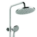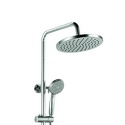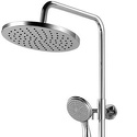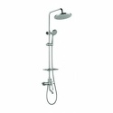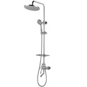 Устройство: душевая система • Смеситель: джойстик • Ручной душ (душевая лейка): размер 100 мм • Верхний душ (тропический): размер 250 мм, настройки 1 шт • Комплектация: ручной душ, верхний душ, смеситель, стойка, шланг, крепление ручного душа, полка