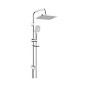 Устройство: душевая система • Ручной душ (душевая лейка): размер 110 мм, настройки 3 шт • Верхний душ (тропический): размер 300 мм, настройки 1 шт • Комплектация: ручной душ, верхний душ, стойка, шланг, крепление ручного душа, мыльница