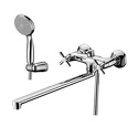 Количество монтажных отверстий - 2, Комплектация - Держатель душевой лейки, душевой шланг, ручной душ, Покрытие - Хром, Поворотный излив - Да, Тип - Двухзахватный, Материал корпуса - Латунь, Присоединительный размер - 1\2", Форма излива - Традиционная, Встраиваемый - Нет, Назначение - Универсальный, Максимальный расход воды - 22.3, Высота - 10.3, Термостат - Нет, Тип подводки - Жесткая, Цвет - Серебристый, Донный клапан - Нет, Длина излива - 418, Глубина - 43.2, Аэратор - Есть, Ширина - 21.7