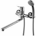 Комплектация - ручной душ, Держатель душевой лейки, душевой шланг, Тип - Двухзахватный, Назначение - Для ванны и душа, Максимальный расход воды - 22.3, Материал корпуса - Латунь, Присоединительный размер - 1\2", Покрытие - Хром, Количество монтажных отверстий - 2, S-образные эксцентрики - Есть, Тип подводки - Жесткая, Форма излива - Традиционная, Поворотный излив - Да, Аэратор - Есть, Цвет - Серебристый, Длина излива - 360, Высота - 20.7, Ширина - 25, Глубина - 37.1