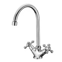 Максимальный расход воды - 22.3, Форма излива - Традиционная, Поворотный излив - Да, Цвет - Серебристый, Количество монтажных отверстий - 1, Встраиваемый - Нет, Покрытие - Хром, Назначение - Для мойки, Высота - 31.5, Присоединительный размер - 1\2", Материал корпуса - Латунь, Аэратор - Есть, Донный клапан - Нет, Термостат - Нет, Тип - Двухзахватный, Тип подводки - Гибкая, Ширина - 13.7, Длина излива - 176, Высота излива - 207