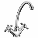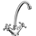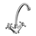 Назначение: кухонный • Конструкция: двухрычажный • Монтаж: горизонтальный • Клапан: керамический • Материал: латунь, покрытие - хром • Подводка: гибкая • Монтажные отверстия: 1 отверстие • Форма излива: традиционная • Душевая лейка в комплекте: нет • Аэратор: есть