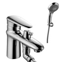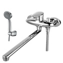 Назначение: ванна+душ • Конструкция: однорычажный • Монтаж: горизонтальный • Клапан: керамический • Материал: латунь, покрытие - хром • Подводка: гибкая • Монтажные отверстия: 1 отверстие • Форма излива: традиционная • Душевая лейка в комплекте: есть • Держатель для душевой лейки: настенный держатель • Аэратор: есть