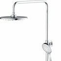 Устройство: душевая система • Смеситель: джойстик • Ручная лейка: настройки 3 шт • Верхний душ: размер 228 мм, настройки 1 шт • Комплектация: лейка, смеситель, стойка, шланг, крепление лейки, полка