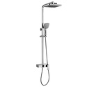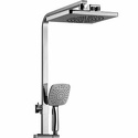 Устройство: душевая система • Смеситель: джойстик • Ручная лейка: размер 117 мм, настройки 2 шт • Верхний душ: размер 245 мм, настройки 2 шт • Комплектация: лейка, смеситель, стойка, шланг, крепление лейки