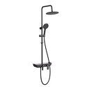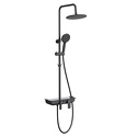 Устройство: душевая система • Смеситель: джойстик • Ручной душ (душевая лейка): размер 120 мм, настройки 4 шт • Верхний душ (тропический): размер 237 мм, настройки 1 шт • Комплектация: ручной душ, верхний душ, смеситель, стойка, шланг, крепление ручного душа, полка