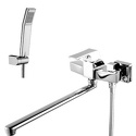 Назначение: универсальный • Конструкция: однорычажный • Монтаж: вертикальный • Клапан: керамический • Подводка: жесткая • Монтажные отверстия: 2 отверстия • Форма излива: традиционная • Душевая лейка в комплекте: есть • Держатель для душевой лейки: настенный держатель • Аэратор: есть • Эксцентрики в комплекте: есть • Донный клапан в комплекте: есть