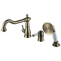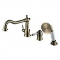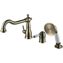 Назначение: ванна+душ • Конструкция: однорычажный • Монтаж: горизонтальный • Клапан: керамический • Материал: латунь, покрытие - бронза • Монтажные отверстия: 3 отверстия • Форма излива: традиционная • Душевая лейка в комплекте: есть • Аэратор: есть