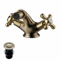 Назначение: кухонный • Конструкция: двухрычажный • Монтаж: горизонтальный • Клапан: керамический • Материал: покрытие - бронза • Подводка: гибкая • Монтажные отверстия: 1 отверстие • Форма излива: традиционная • Душевая лейка в комплекте: нет • Аэратор: есть • Донный клапан в комплекте: есть