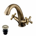 Назначение: для умывальника • Конструкция: двухрычажный • Монтаж: горизонтальный • Клапан: керамический • Материал: покрытие - бронза • Подводка: гибкая • Монтажные отверстия: 1 отверстие • Форма излива: традиционная • Душевая лейка в комплекте: нет • Аэратор: есть • Донный клапан в комплекте: есть