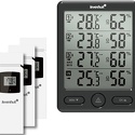 Особенностиизмерения температуры и влажности в 4 точках, ЖК-экран с индикацией уровня комфорта, предупреждающие сигналы с возможностью настройки диапазонов, фиксация максимальных и минимальных значений