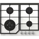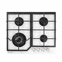 Поверхность: варочная панель • Тип поверхности: газовая • Рабочая поверхность: закаленное стекло • Число конфорок: 4 • Установка: независимая • Газовые конфорки: всего - 4 (1 конфорка "Тройная корона") • Газ-контроль конфорок: есть • Тип управления: механическое • Переключатели: поворотные • Электроподжиг: есть, автоматический • Размеры: 590x500x95 мм • Размер ниши для встраивания: 550x480 мм