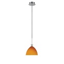 Подвесной светильник стиля модерн для гостиной, кабинета, кухни, прихожей или спальни имеет размеры 180x1250 мм. Арматура светильника окрашена в хромовый цвет. Лампы в комплекте - отсутствуют. В светильнике применяются лампы накаливания или светодиодная LED-лампа. Цвет плафонов - янтарный полосатый, с матовой, рельефной поверхностью. Материал плафонов - стекло. Класс электробезопасности - I, степень пылевлагозащиты (IP) - 20. Максимальная мощность лампы (Вт) - 40. Светильник размещается на потолоке.