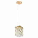Подвесной светильник стиля модерн для гостиной, кабинета, прихожей или спальни имеет размеры 100x100x1200 мм. Арматура светильника окрашена в золотой цвет. Лампы в комплекте - отсутствуют. В светильнике применяются галогеновая лампа или светодиодная LED-лампа. Цвет плафонов - неокрашенный, с прозрачной поверхностью. Материал плафонов - хрусталь. Класс электробезопасности - I, степень пылевлагозащиты (IP) - 20. Максимальная мощность лампы (Вт) - 40. Светильник размещается на потолоке.
