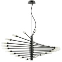 Подвесная люстра стиля модерн для гостиной, кабинета или спальни имеет размеры 1230x1600 мм. Арматура светильника окрашена в черный цвет. Лампы в комплекте - отсутствуют. В светильнике применяются галогеновая лампа или светодиодная LED-лампа. Цвет плафонов - белый, с матовой поверхностью. Материал плафонов - стекло. Класс электробезопасности - I, степень пылевлагозащиты (IP) - 20. Максимальная мощность лампы (Вт) - 40. Светильник размещается на потолоке.