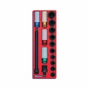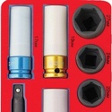 Комплектация• Головки торцевые ударные шестигранные короткие 1/2": 10, 12, 13, 14, 17, 19, 21, 22, 24, 27 мм;• Головки торцевые ударные тонкостенные шестигранные глубокие с пластиковым покрытием 1/2": 17, 19, 21, 22 мм;• Удлинитель прямой ударный 1/2" 250 мм;• Кардан шарнирный ударный 1/2".