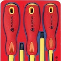 Комплектация• Отвертки диэлектрические шлицевые с двухкомпонентной анатомической ручкой: 6.5х100, 8х175 мм;• Отвертки диэлектрические крестовые с двухкомпонентной анатомической ручкой: 1х80, 2х100, 3х150 мм.