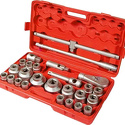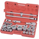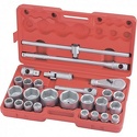 Комплектация- Головки торцевые: 21 мм, 22 мм, 23 мм, 24 мм, 26 мм, 27 мм, 28 мм, 29 мм, 30 мм, 31 мм, 32 мм, 34 мм, 38 мм, 41 мм, 46 мм, 50 мм, 35 мм, 55 мм, 60 мм, 65 мм- Удлинители: 200 мм, 525 мм- Другие предметы 3/4": вороток Т-образный, карданный шарнир, трещотка, переходник 3/4"DR(F)х1"DR(M)