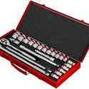Набор: 24 шт • Головки: 6-ти гранные головки • Ключей-трещоток: 1 шт • Хранение: металлический кейс
