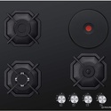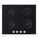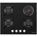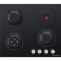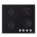 Поверхность: варочная панель • Тип поверхности: комбинированный • Рабочая поверхность: закаленное стекло • Число конфорок: 4 • Установка: независимая • Электрические конфорки: всего - 1 (1 конфорка быстрого разогрева) • Конфигурация электрических конфорок: 1 x 1500 • Газовые конфорки: всего - 3 (1 конфорка "Тройная корона") • Газ-контроль конфорок: есть • Тип управления: механическое • Переключатели: поворотные