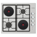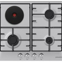 Поверхность: варочная панель • Тип поверхности: комбинированный • Рабочая поверхность: нерж.сталь • Число конфорок: 4 • Установка: независимая • Электрические конфорки: чугунные; всего - 1 (1 конфорка быстрого разогрева) • Конфигурация электрических конфорок: 1 x 1500 • Газовые конфорки: всего - 3 • Газ-контроль конфорок: есть • Тип управления: механическое • Переключатели: поворотные
