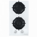 Поверхность: варочная панель • Тип поверхности: газовая • Рабочая поверхность: закаленное стекло • Число конфорок: 2 • Установка: независимая • Газовые конфорки: всего - 2 • Газ-контроль конфорок: есть • Тип управления: механическое • Переключатели: поворотные • Дизайн "Домино": есть • Электроподжиг: есть, автоматический • Размеры: 290x515x51 мм • Размер ниши для встраивания: 260x485 мм • Цвет: панель - белый