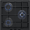 газовая на 3 конфорки • закаленное стекло • мощность: 5700 Вт • автоматический электроподжиг • газ-контроль • решетки: чугун • независимая установка • размеры (ШхГ): 55x41 см