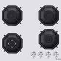 Поверхность: варочная панель • Тип поверхности: газовая • Рабочая поверхность: закаленное стекло • Число конфорок: 4 • Установка: независимая • Газовые конфорки: всего - 4 (1 конфорка "Тройная корона") • Газ-контроль конфорок: есть • Тип управления: механическое • Переключатели: поворотные • Электроподжиг: есть, автоматический • Размеры: 590x515x51 мм • Размер ниши для встраивания: 560x485 мм