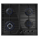 газовая на 4 конфорки • закаленное стекло • мощность: 7400 Вт • автоматический электроподжиг • газ-контроль • решетки: чугун • независимая установка • размеры (ШхГ): 59x51.5 см