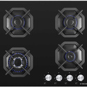 Поверхность: варочная панель • Тип поверхности: газовая • Рабочая поверхность: закаленное стекло • Число конфорок: 4 • Установка: независимая • Газовые конфорки: всего - 4 (1 конфорка "Тройная корона") • Газ-контроль конфорок: есть • Тип управления: механическое • Переключатели: поворотные • Электроподжиг: есть, автоматический • Размеры: 590x515x51 мм • Размер ниши для встраивания: 560x485 мм