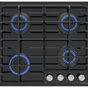 Поверхность: варочная панель • Тип поверхности: газовая • Рабочая поверхность: закаленное стекло • Число конфорок: 4 • Установка: независимая • Газовые конфорки: всего - 4 • Газ-контроль конфорок: есть • Тип управления: механическое • Переключатели: поворотные • Электроподжиг: есть, автоматический • Размеры: 590x515x51 мм • Размер ниши для встраивания: 560x485 мм • Цвет: панель - черный
