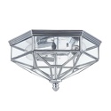 Накладной светильник стиля модерн для улицы имеет размеры 352х304х192 мм. Арматура светильника окрашена в хромовый цвет. Лампы в комплекте - отсутствуют. В светильнике применяются лампы накаливания или светодиодная LED-лампа. Цвет плафонов - неокрашенный, с прозрачной, рельефной поверхностью. Материал плафонов - стекло. Класс электробезопасности - I, степень пылевлагозащиты (IP) - 43. Максимальная мощность лампы (Вт) - 60. Светильник размещается на потолоке.