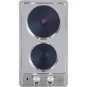 Поверхность: варочная панель • Тип поверхности: электрическая • Число конфорок: 2 • Установка: независимая • Электрические конфорки: чугунные; всего - 2 • Конфигурация электрических конфорок: 1 x 155 мм 1500 1 x 190 мм 2000 • Тип управления: механическое • Переключатели: поворотные • Размеры: 300x509 мм • Размер ниши для встраивания: 268x495 мм • Цвет: панель - металлик