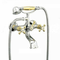 Назначение: ванна+душ • Конструкция: с раздельными клапанами • Монтаж: вертикальный • Материал: покрытие - двухцветный • Монтажные отверстия: 2 отверстия • Форма излива: традиционная • Душевая лейка в комплекте: есть • Держатель для душевой лейки: на смесителе • Донный клапан в комплекте: есть